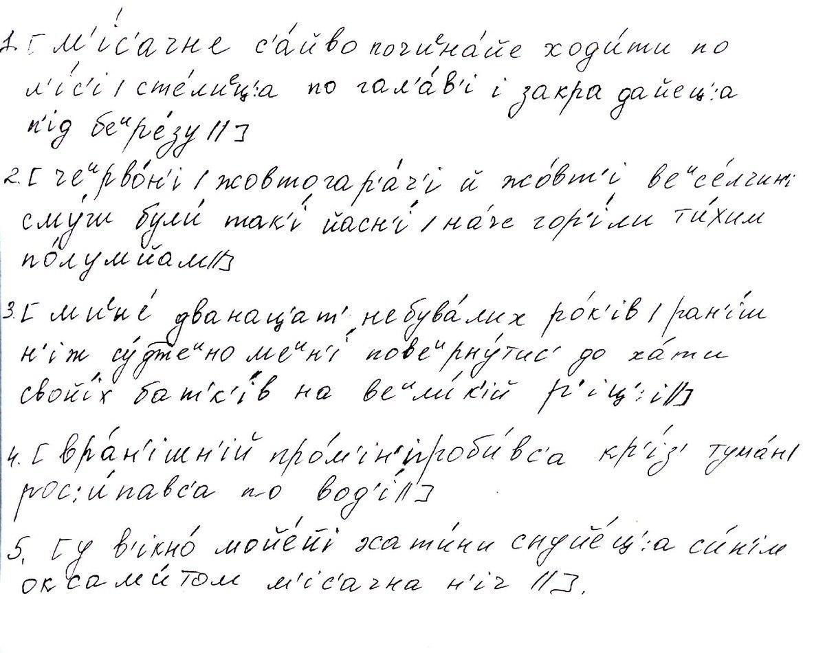 5. У вікно моєї хатини снується синім оксамитом місячна ніч.