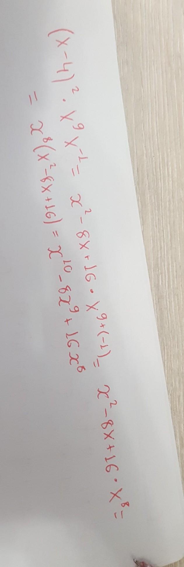(х-4)²*х⁹/х=(х²-8х+16)*х⁸=х¹⁰-8х⁹+16х⁸