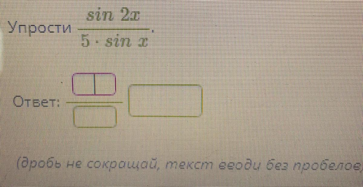 (sin(2x))/(5sin(x))=(2sin(x)cos(x))/(5sin(x))=2cos(x)/5