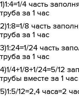 В городе есть искусственный водоем. Одна из труб может заполнить его за 6 часов, Вторая – за 8 часов, Третья - за 24 часа. За сколько часов наполнится водоем при работе трёх труб одновременно?