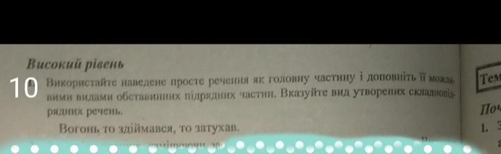 Використайте наведених просте речення як головну частину і доповніть її можливими видами підрядних обставин. Вказуйте вид утворення складнопідрядних речень