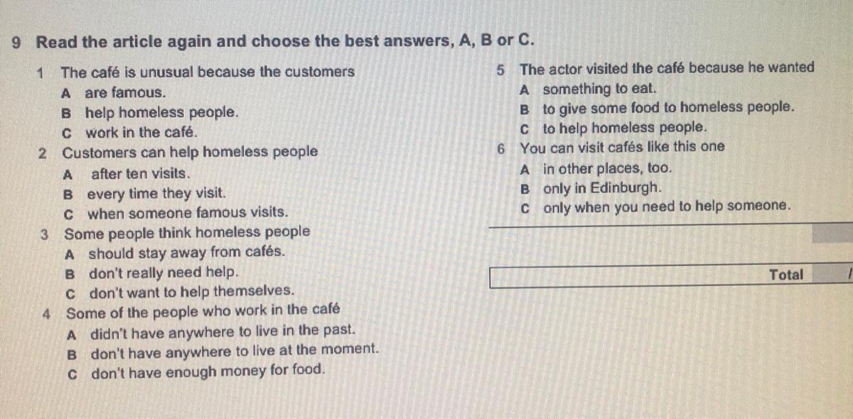cafés like the one in Edinburgh. (5) ........................... So next time you want to have a sandwich or something hot to drink, try