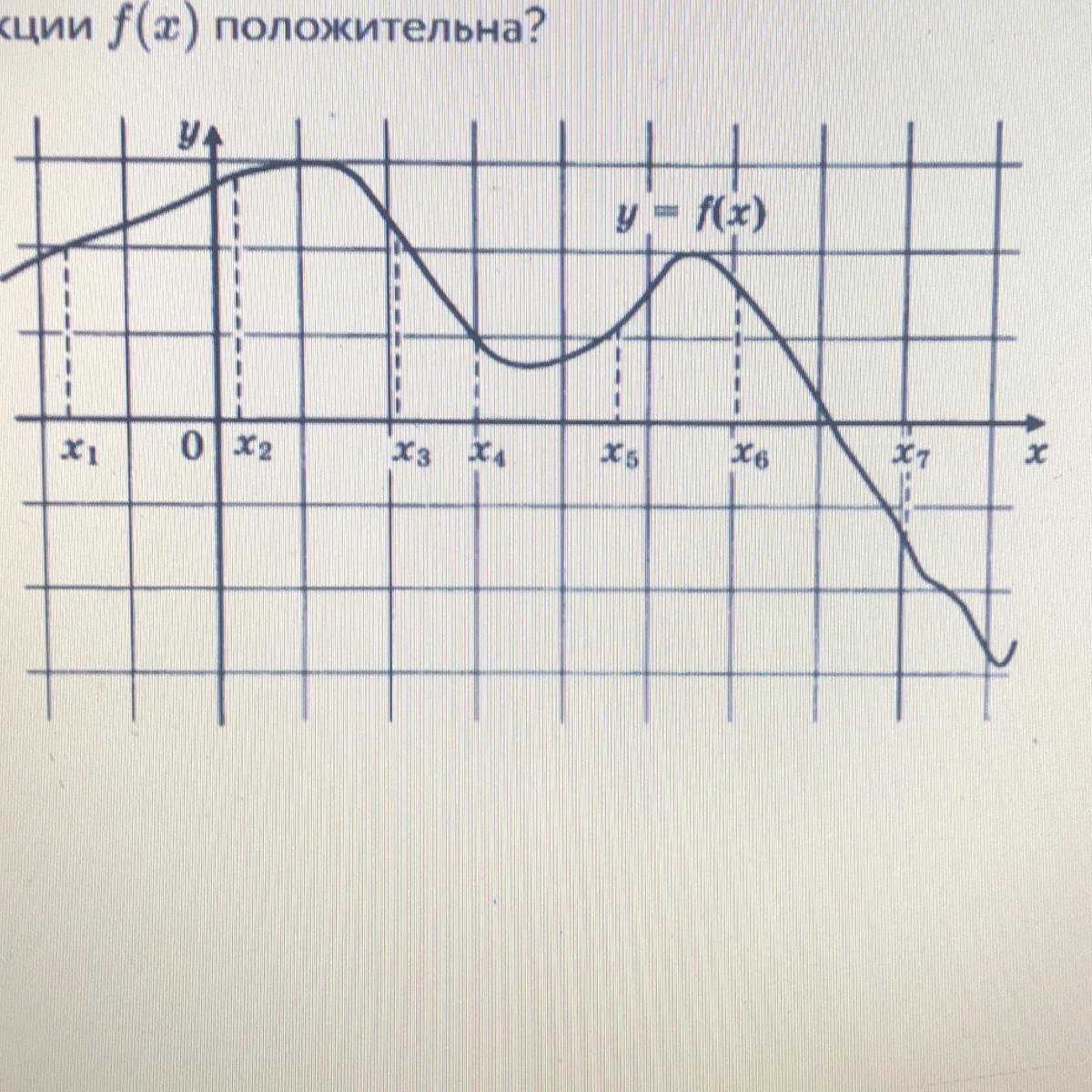 На рисунке изображён график дифференцируемой функции y=f(x). На оси абсцисс отмечены семь точек: x1, x2, ...,х7