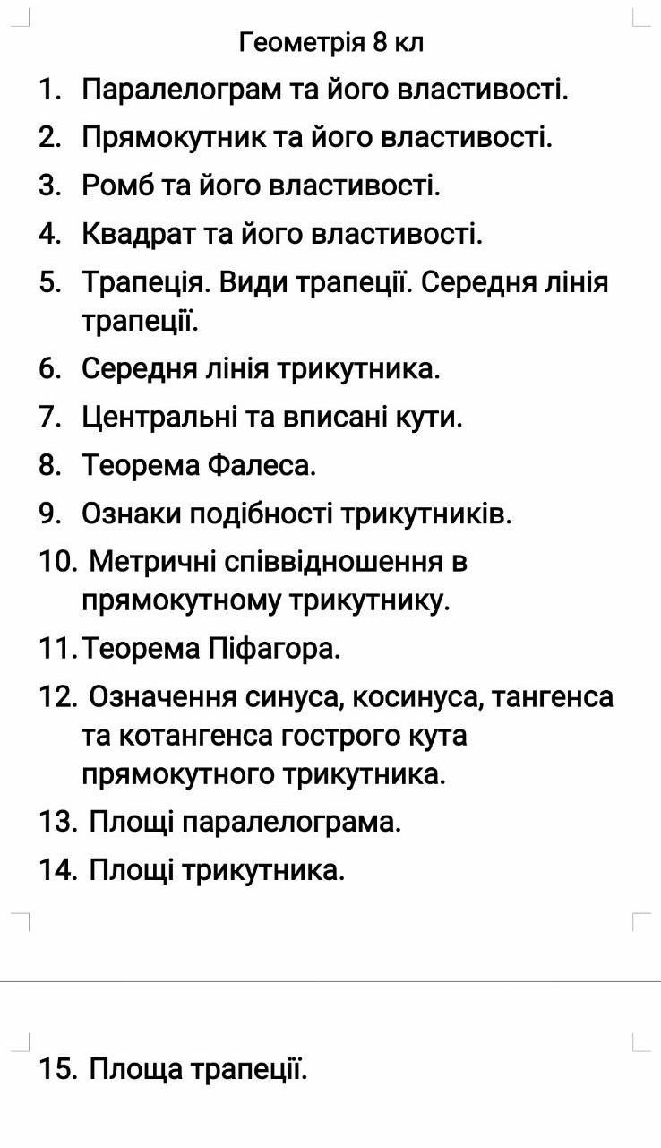 6.Відрізок, що сполучає середини двох сторін трикутника, називається середньою лінією трикутника. Середня лінія трикутника паралельна одній із його сторін і дорівнює половині цієї сторони. У кожному трикутнику є три середні лінії.