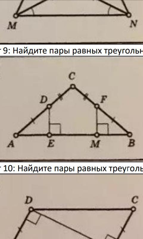 Найдите пары равных треугольников и докажите из равенство,помогите пж