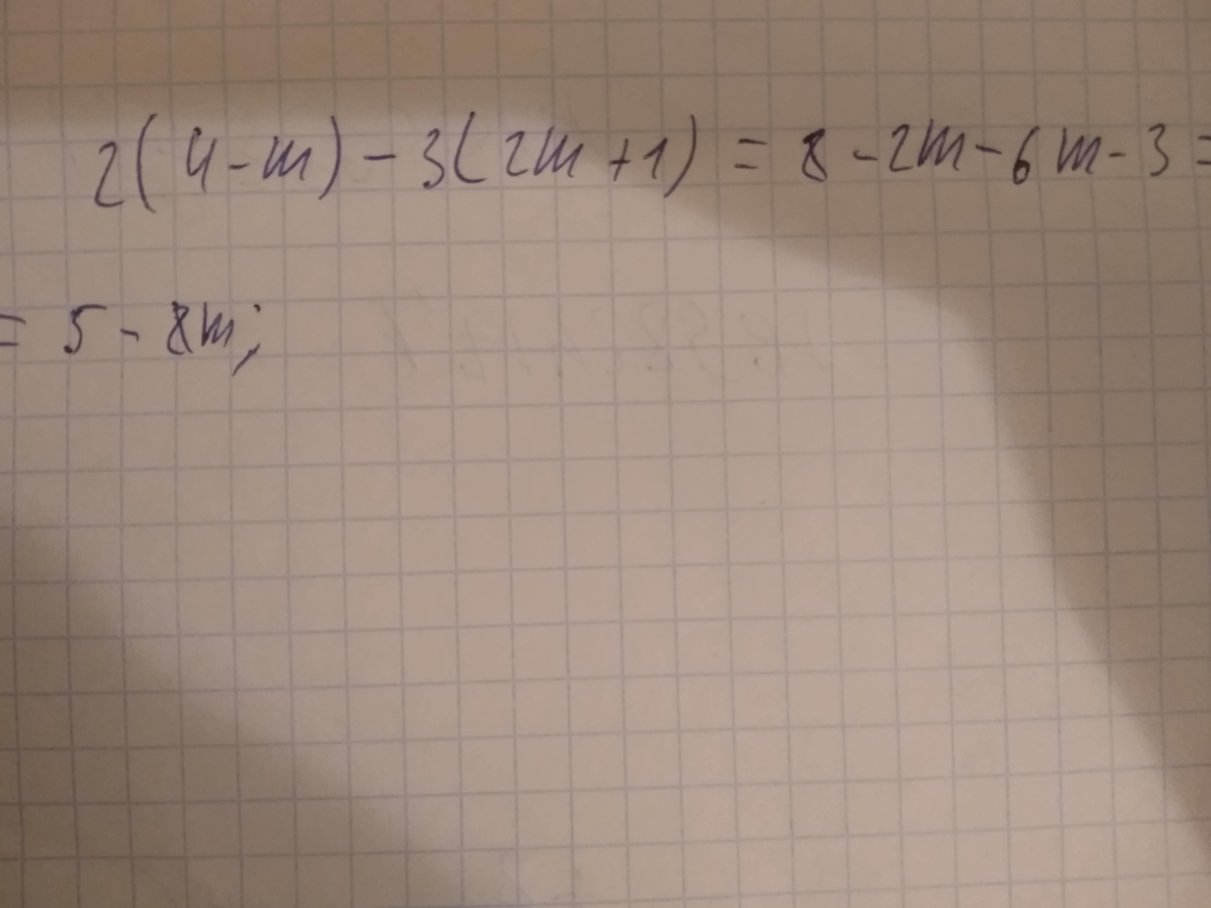 2(4-m)-3(2m+1) = 8-2m - 6m-3 = 5-8m