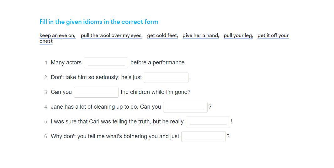 Fill in the given idioms in the correct form