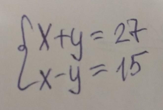 Помогите пожалуйста!!!!!! Скорость моторной лодки по течению реки равна 27 км/ч, а против течения 15 км/ч. Собственная скорость лодки x км/ч, а скорость течения реки y км/ч. Укажите, какая система уравнений отвечает условию задачи.