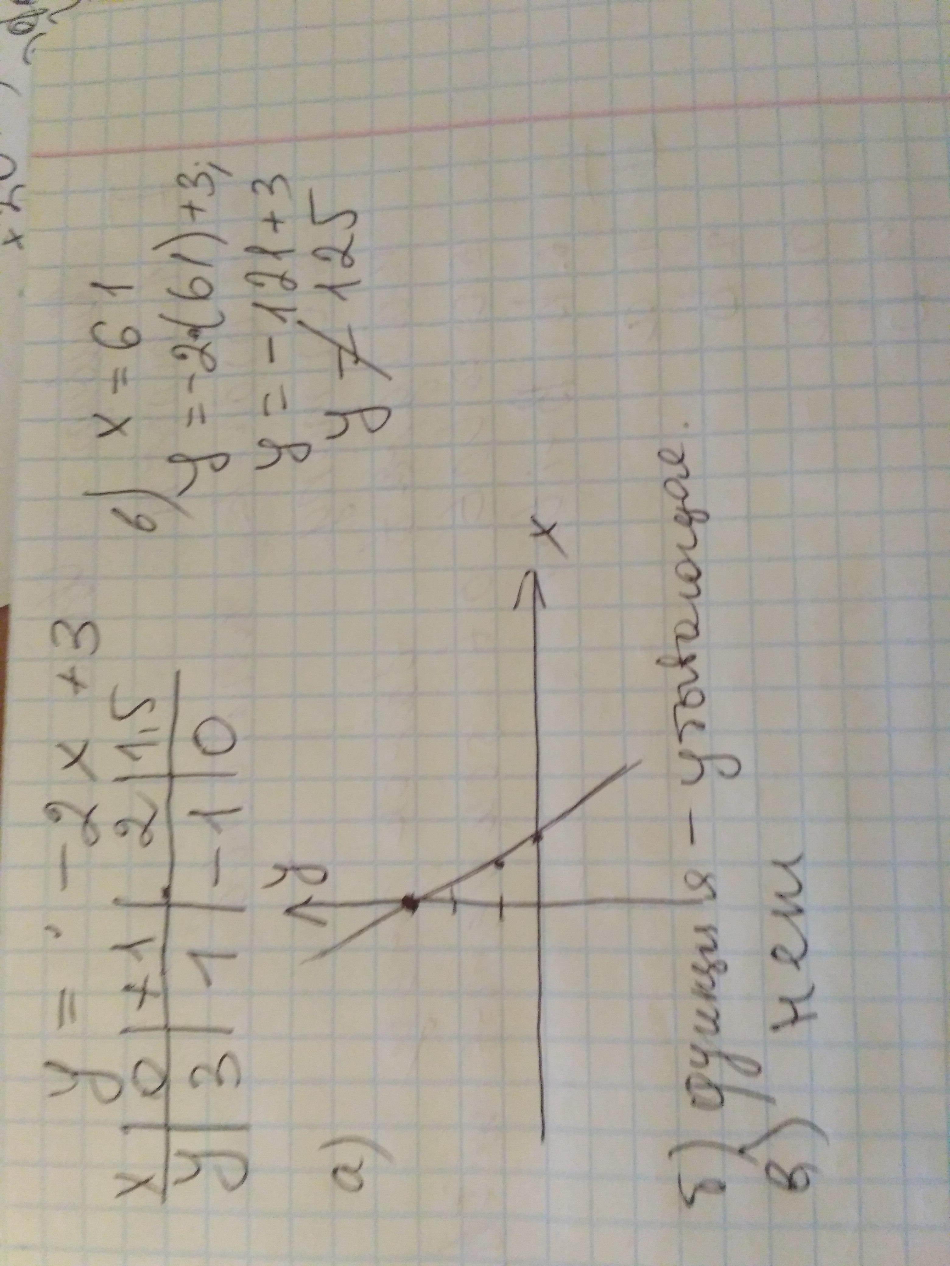 Функция задана формулой y=-2x+3 А) построить график
