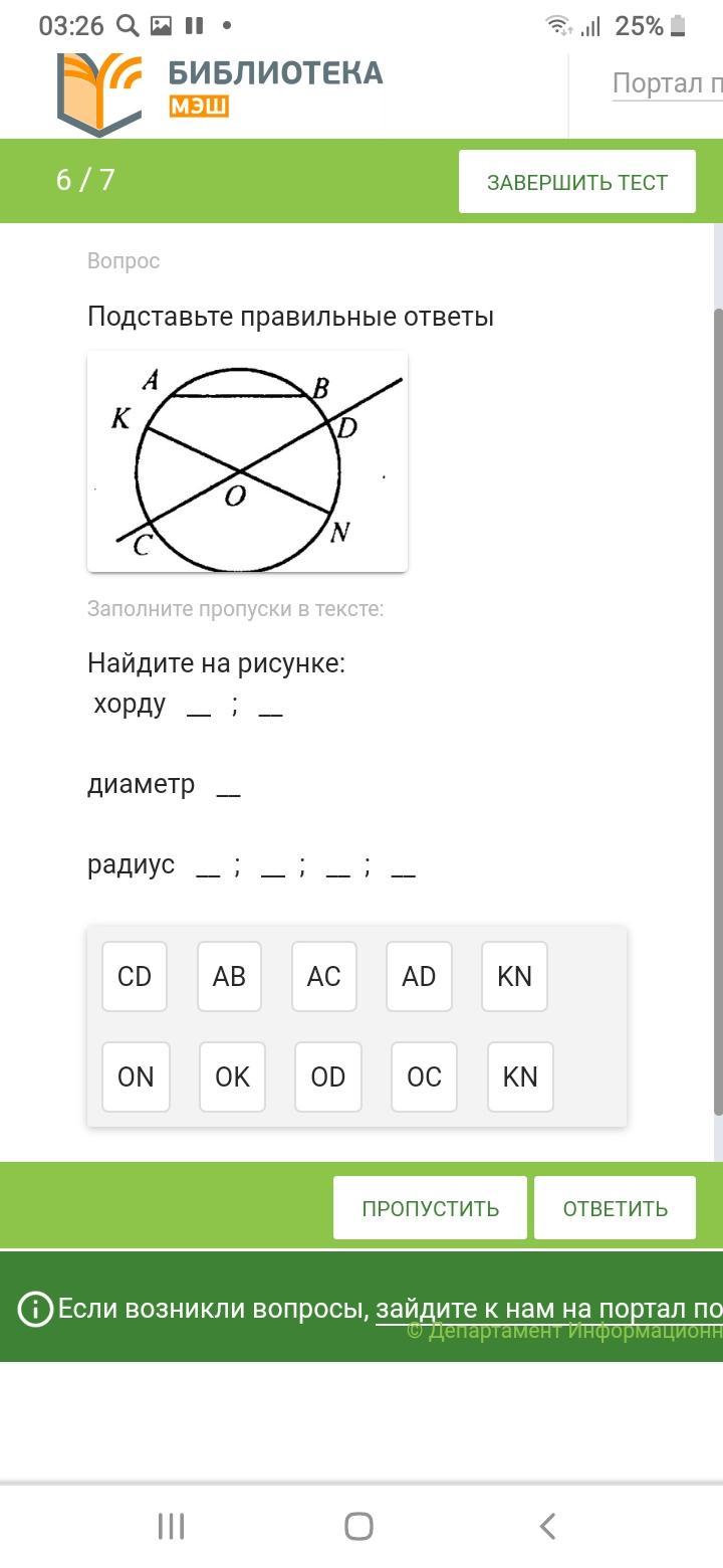 хорды: AB; KN