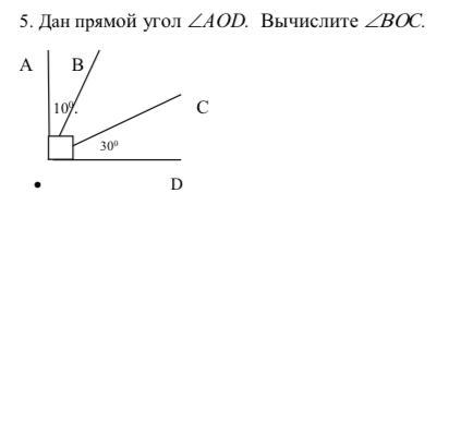 отсюда следует, что угол BOC= AOD-(AOB+COD)