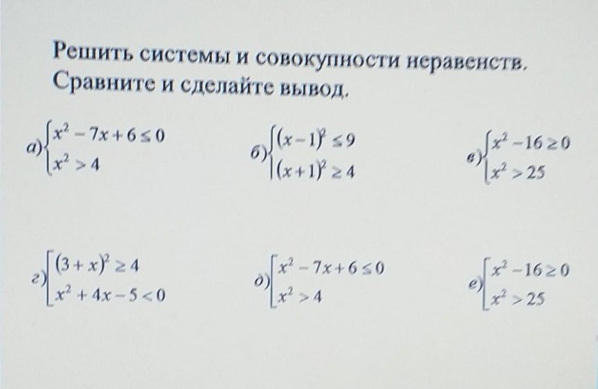 Решить системы и совокупности неравенств.