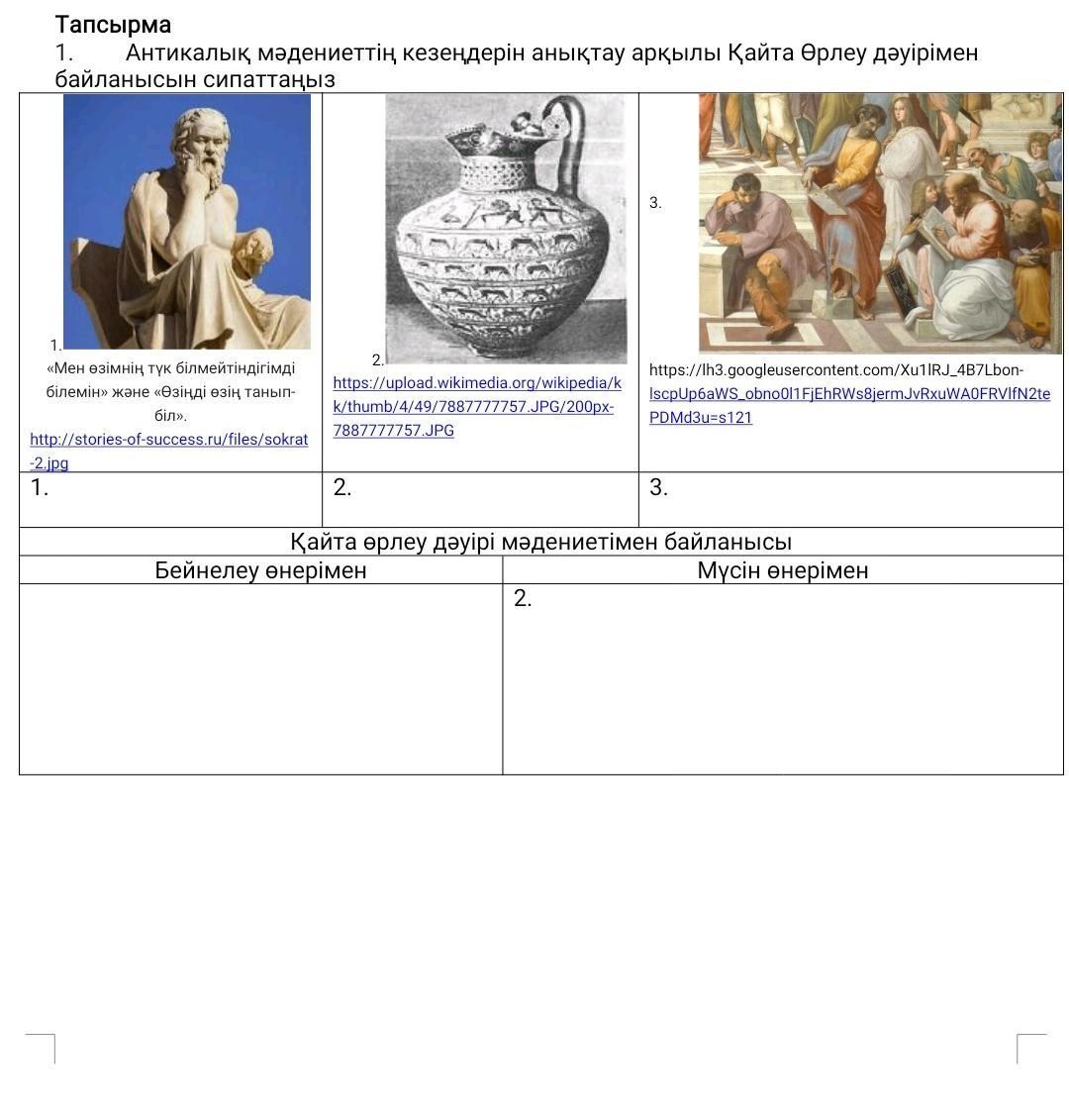 Антикалық мәдениеттің кезеңдерін анықтау арқылы Қайта Өрлеу дәуірімен байланысын сипаттаңыз