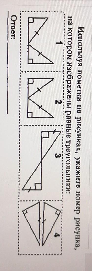 Объяснение:потому что на этом рисунке отмечено ,что гипотенузы равны и угол 90градус. Если гипотенузы равны это означает ,что катеты равны между собой