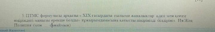 ПТМС формуласы арқылы "19 ғасырдағы ғылымы жаңалықтар адам мен қоғам өміріндегі маңызы ерекше болды. " тұжырымдамасына қатысты пікіріңізді білдіріңіз