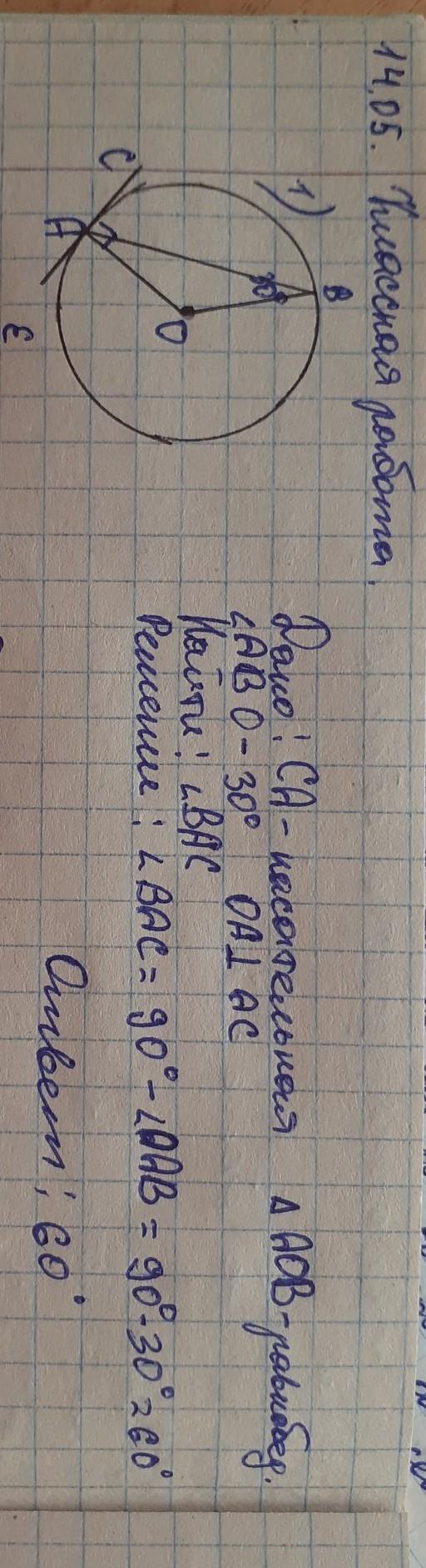 CA - касательная к окружности. вычеслите градусную меру угла ABO, если угол BAC = 70°
