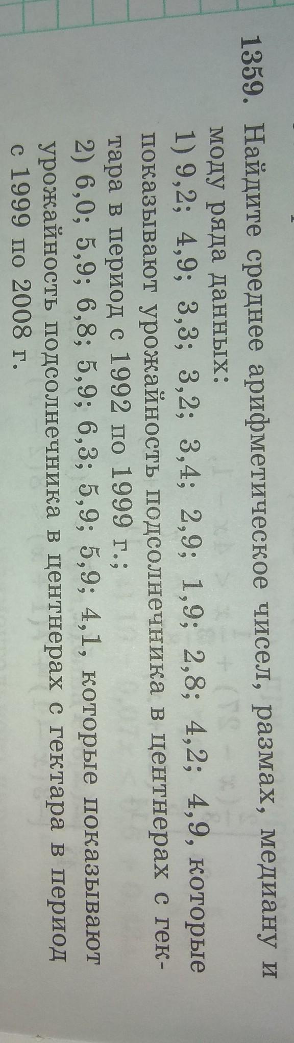 номер 1359 Найдите среднее арифметическое чисел размах медиану и моду ряда данных. Только 1