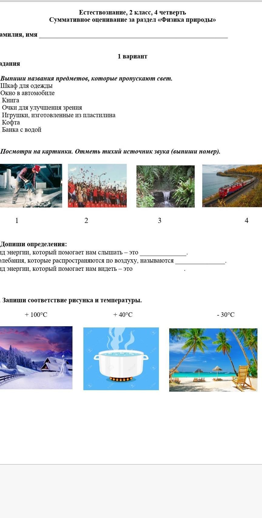 Выпиши названия предметов которые пропускают свет первое шкаф для одежды второе окно в автомобиле 3 книга 4 очки для улучшения зрения 5 игрушки изготовлены из пластика 6 кофта семь банка с водой второе задание Посмотри на картинки и отметьте их источник звука Выпиши номер
