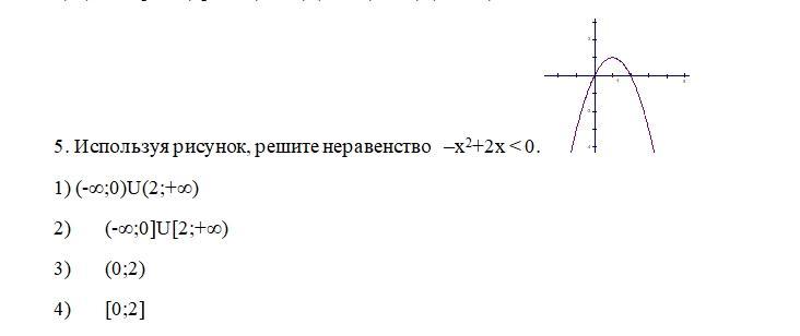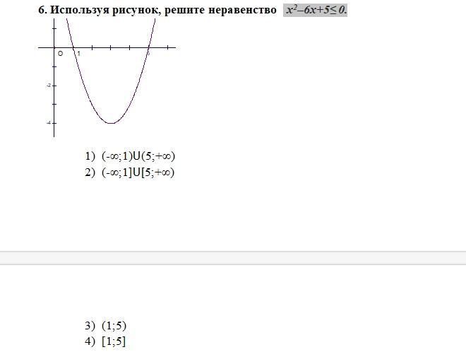 6. Неравенство нестрогое. Ветви параболы должны находиться ниже оси х. Ему соответствует вариант 4 (квадратные скобки)