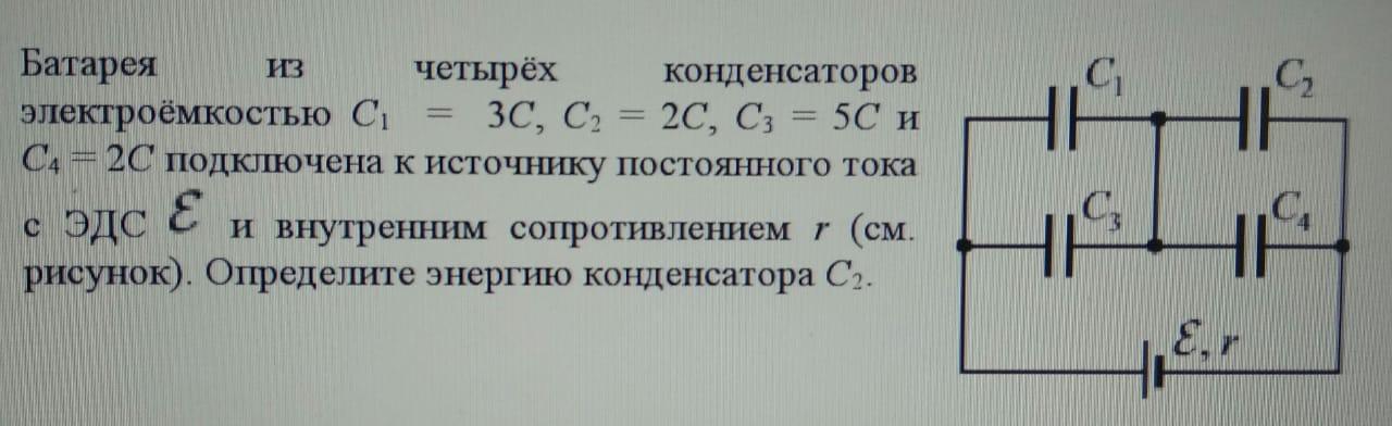 Батарея из четырех конденсаторов электроемкостью C1 = 3C, C3 = 5C и...