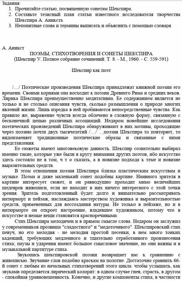 составить тезисный план статьи извесного творчества Шекспира А.Аникста. Шекспир как поэт