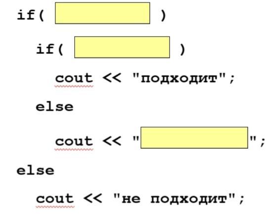 Пусть в переменной v записан возраст сотрудника. Запишите решение этой задачи с помощью вложенных условных операторов, заполните пропуски (рис. 1).