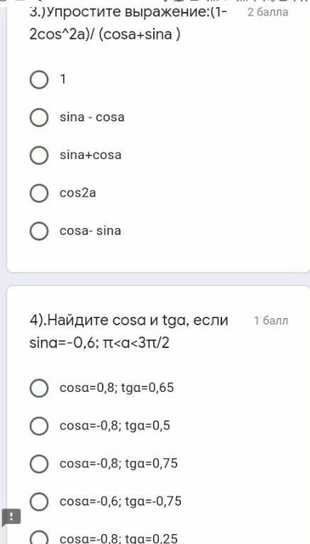 2) sina= -0,6