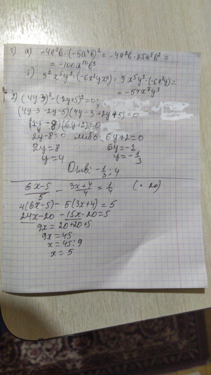 а) (4у-3-2у-5)(4у-3+2у+5)=0