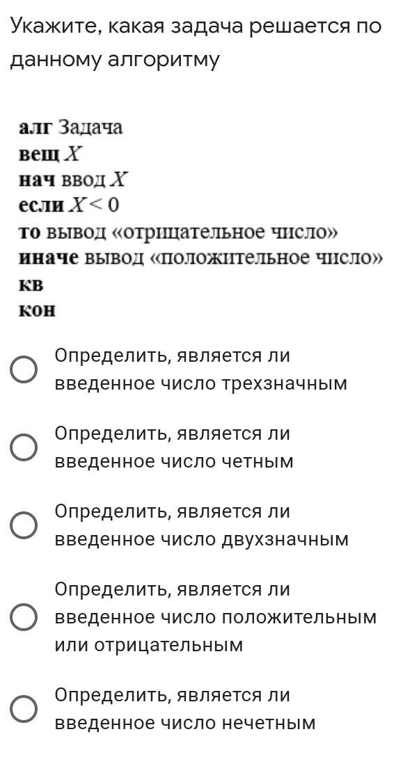 Ответ: определить, является ли введённое число положительным или отрицательным