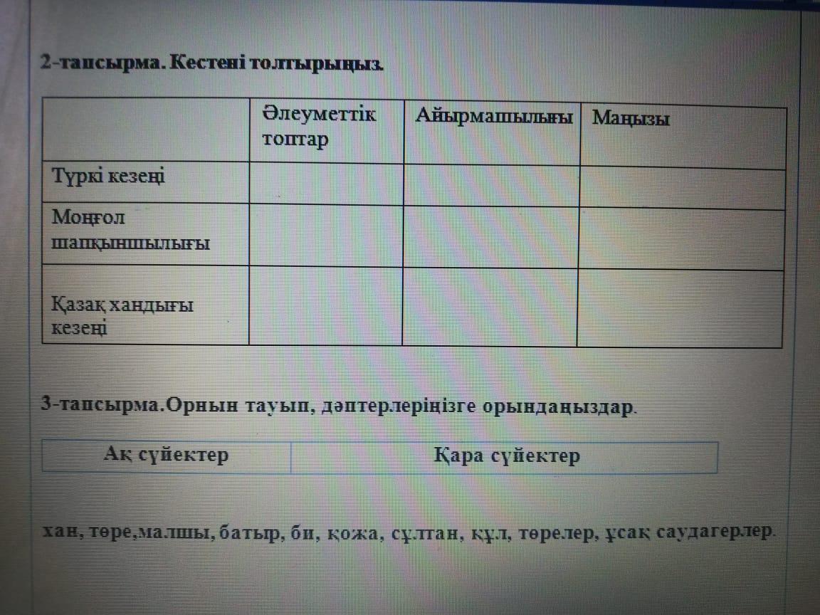 Қарасүйектер:малшы,батыр,би,құл,ұсақ саудагерлер