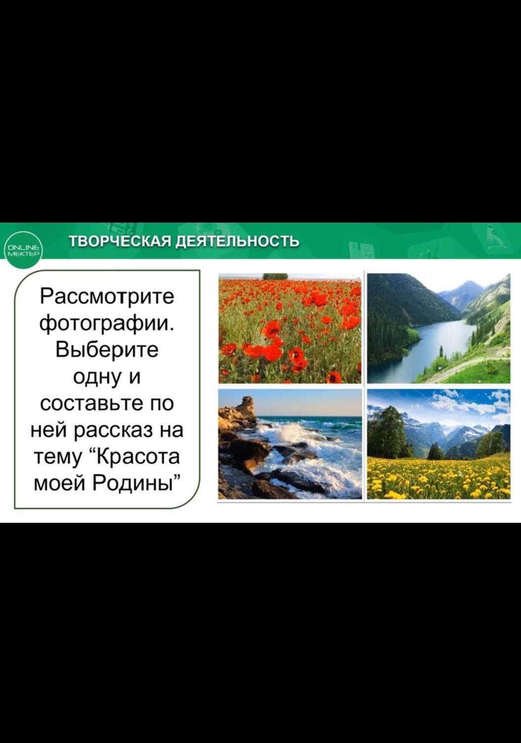 моя Родина самая красивая. В моей Родине есть горы и реки. Ещё в моей Родине есть разнообразные цветы. от красных до белых. в горах очень свежий воздух. мне нравится моя Родина и я сделаю все чтобы защитить ее
