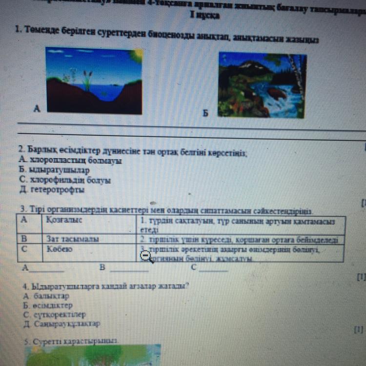 3. Тірі организмдердің касиеттері мен олардың сипаттамасын сәйкестендіріңіз.