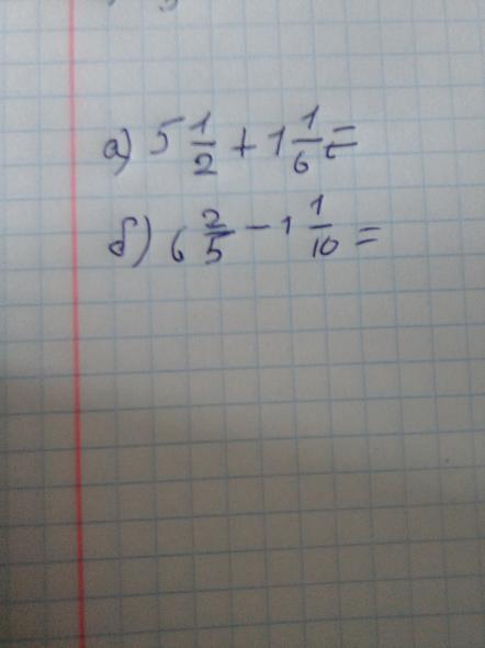 Превращаем в неправильную дробь 5*2+1 1*6+1= 11/2+7/6=надо найти одинаковые знаменатели, 11*6 2*6, 7*2 6*2= 66/12+14/12=80/12=6 8/12