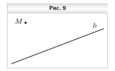 1 . Перерисуйте в тетрадь рисунок 9. Проведите через точку M: 1) прямую a, параллельную прямой b; 2) прямую c, перпендикулярную прямой b.