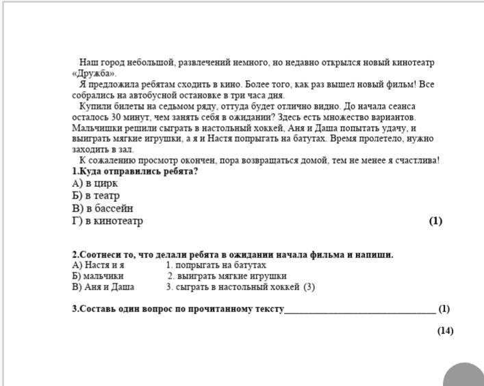 Г) в кинотеатр
