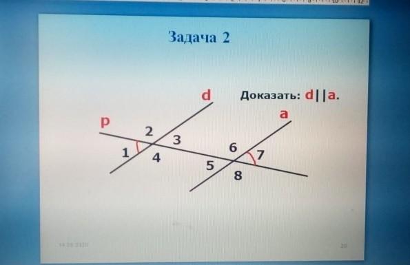 Если внутренние разносторонние углы равны, то прямые d и а паралельние