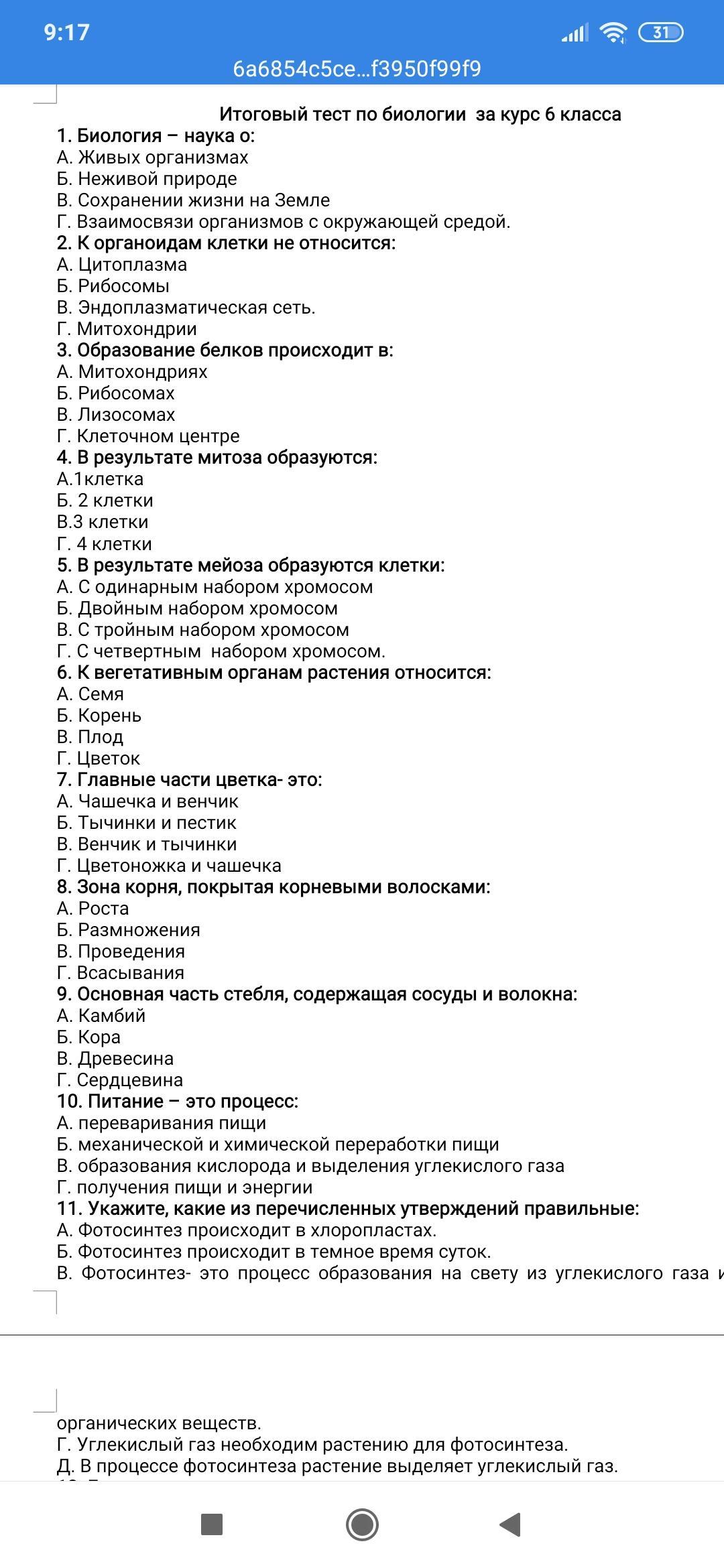 Дам 20 баллов решите пожалуйста по биологии