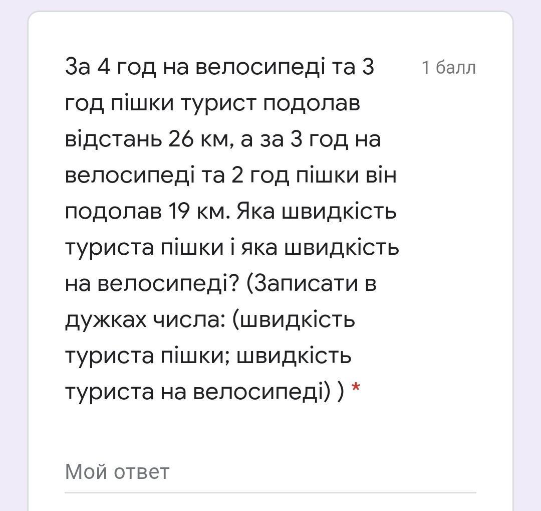 Пусть v1 — скорость на велосипеде, v2 — пешком.