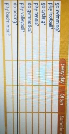 Составь 5 вопросов, а затем ответь на них используя таблицу.