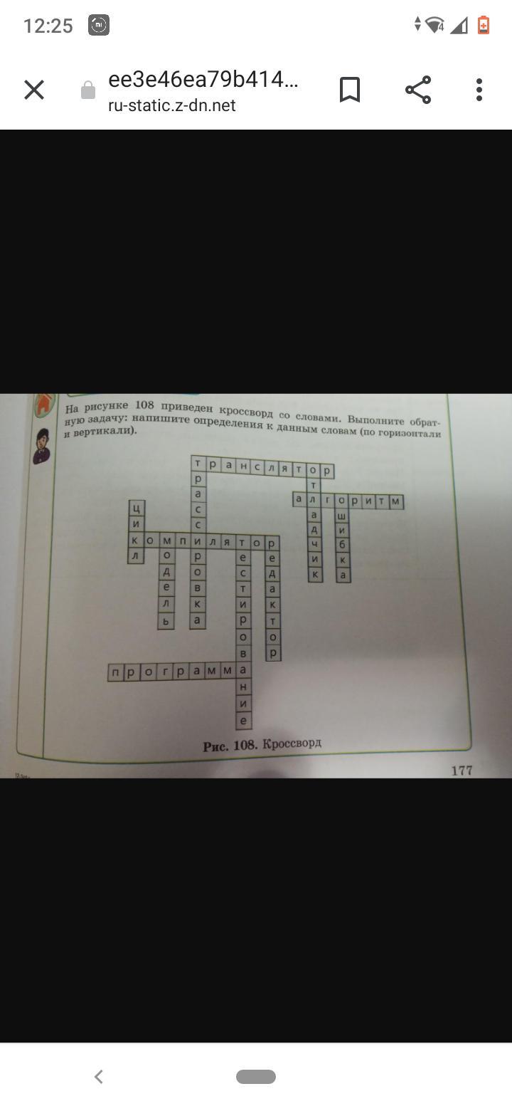 На рисунке 108 приведен кроссворд со словами.Выполните обратную задачу:напишите определения к данным словам(по горизонтали и вертикали).