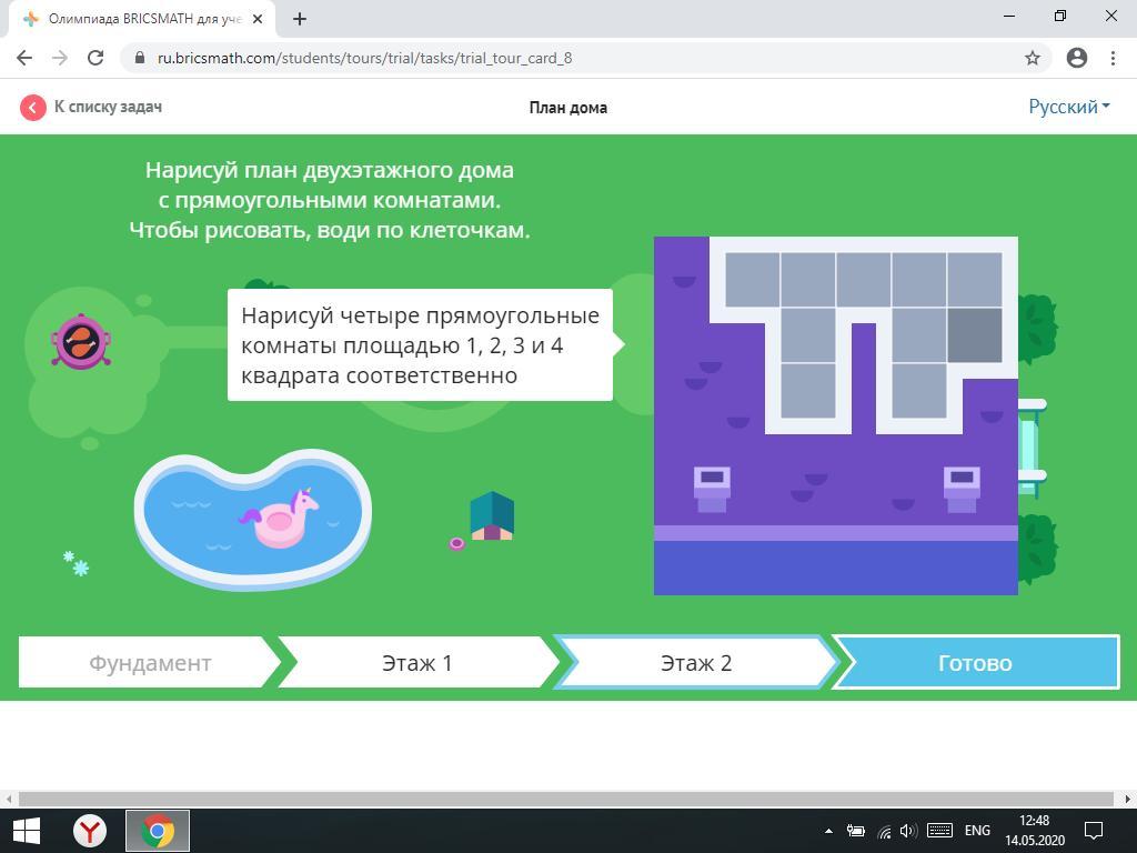 Нарисуй план двухэтажного дома с прямоугольными комнатами. Чтобы рисовать, води по клеточкам.