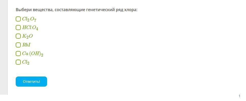 Выбери вещества, составляющие генетический ряд хлора: