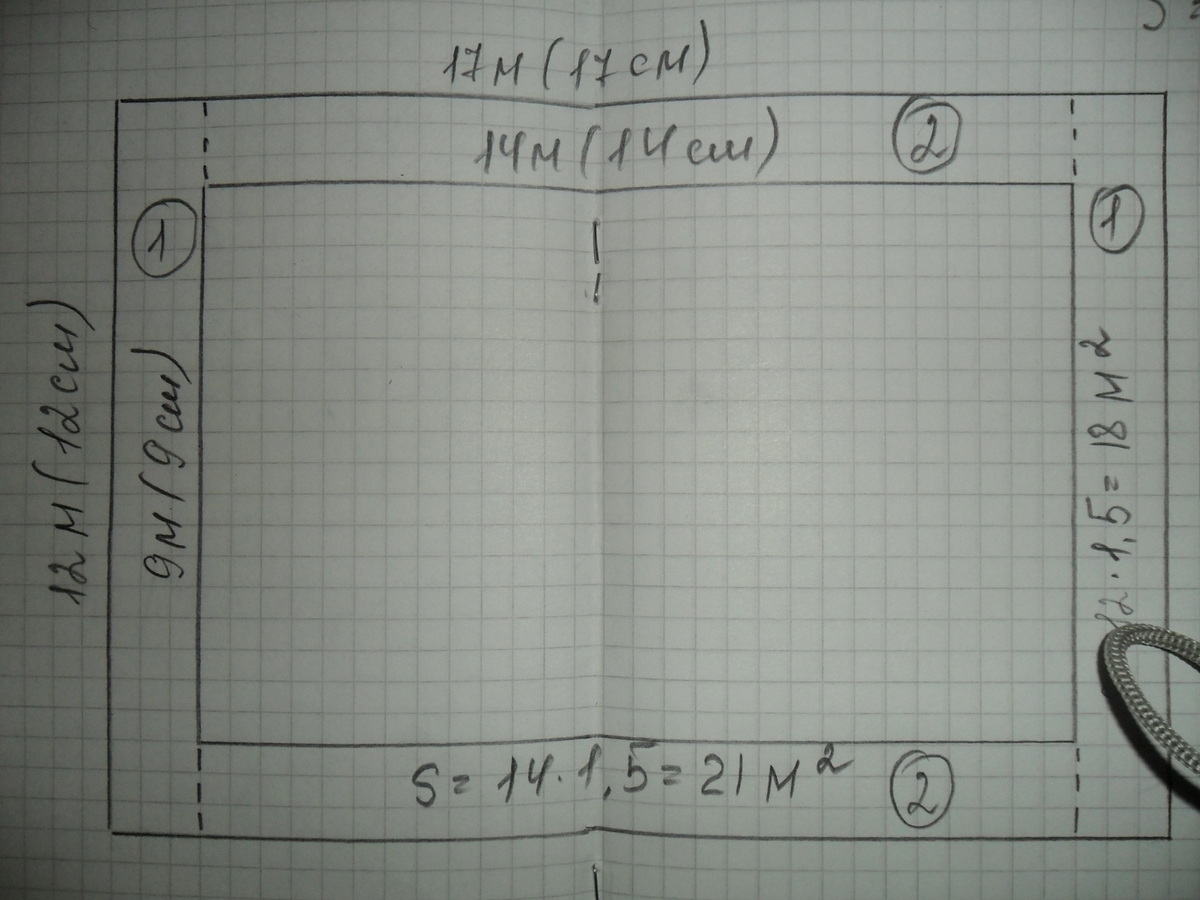 Начертить чертёж в удобном масштабе- значит не обязательно чертить прямоугольник в натуральную величину (17м и 12м, 14м и9м), а можно начертить его поменьше.