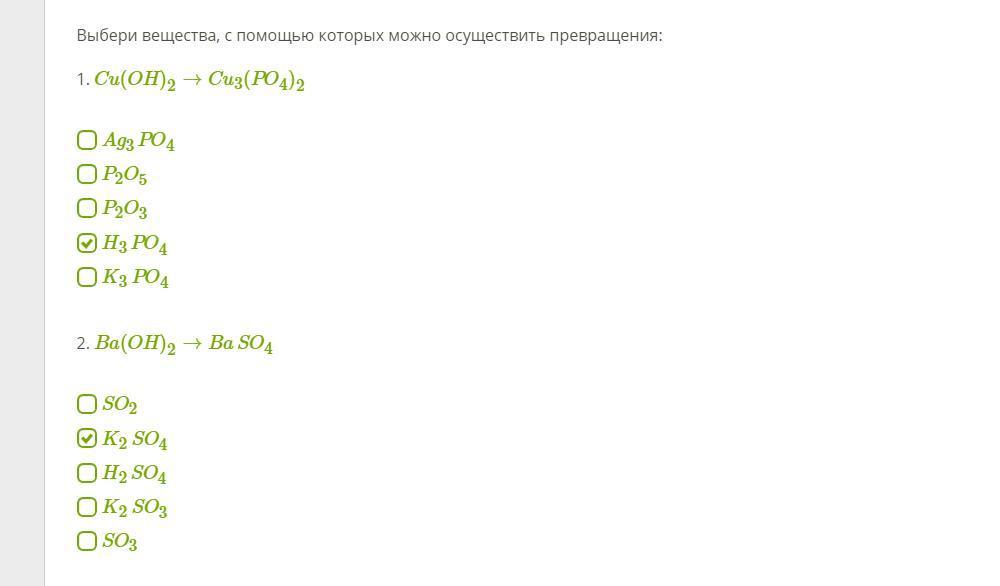 1.Выбери вещества, с помощью которых можно осуществить превращения: