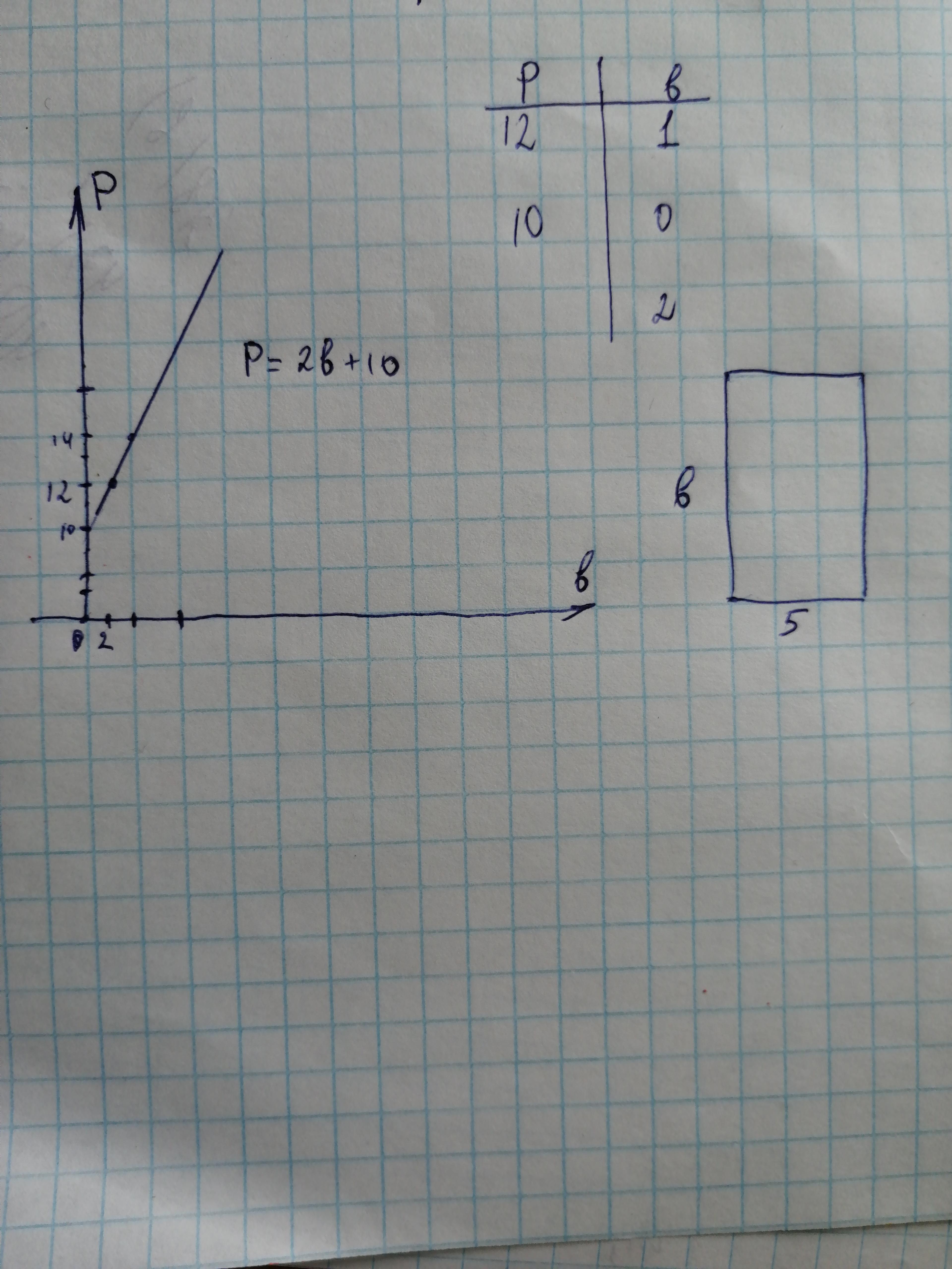 Периметр прямоугольника Pсм, стороны его основания 5 см и bсм. Запишите формулу зависимости P от b. Начертите график полученной функции.
