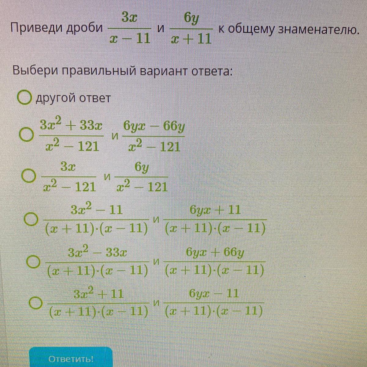 Нужно привести дроби к общему знаменателю. Помогите, пожалуйста