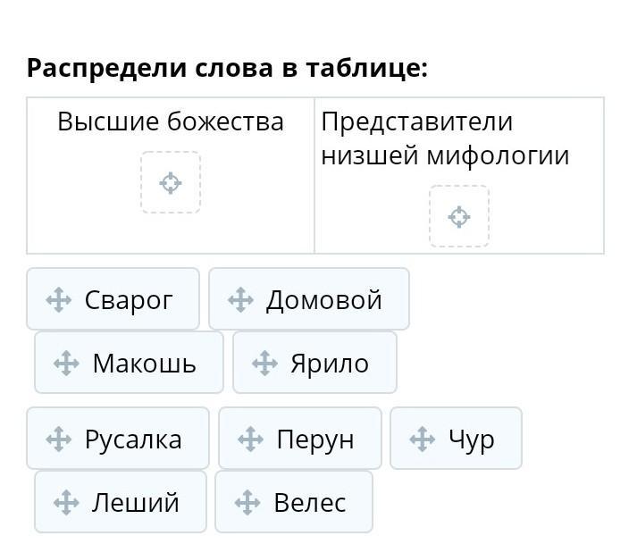 Высшие божества: Велес, Чур, Ярило, Макошь, Сварог, Перун.