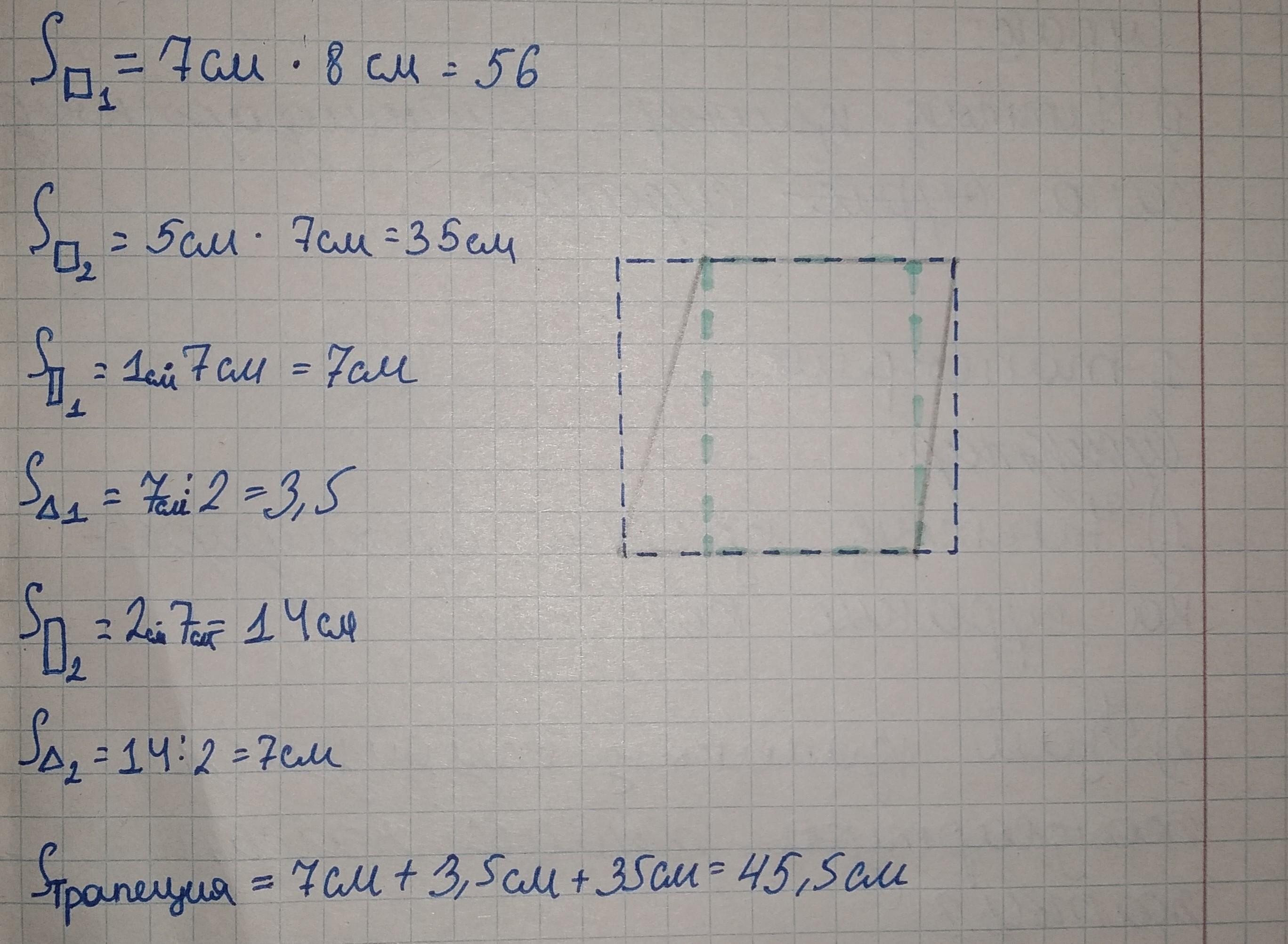 СРОЧНО, пожалуйста. На клетчатой бумаге с размером клетки 1х1 изображена трапеция. Найдите ее площадь