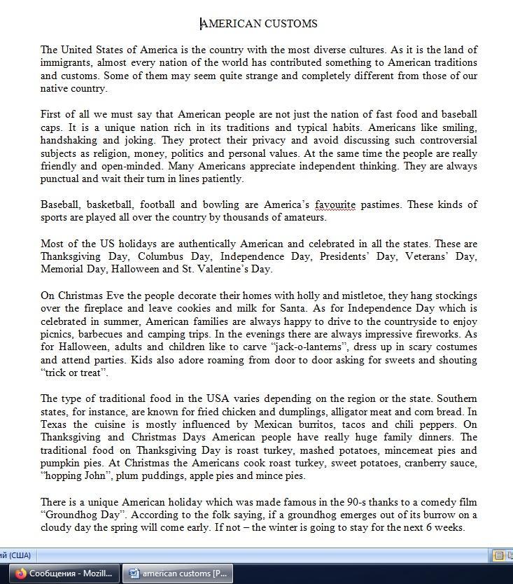 3) Написать перевод 2, 5 и 6 абзацев текста "American Customs" на русский язык