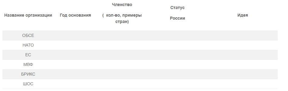 Используя Интернет-ресурсы и лекционный материал, заполните таблицу «Международные организации специальной компетенции». Добавьте сами еще три организации, по классификации относящиеся к межправительственным специальной компетенции.